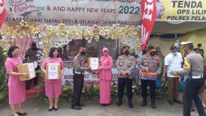 Belawan, Infoindependen.com – Kapolres Pelabuhan Belawan, AKBP Faisal Rahmat HS, SIK, SH, MH didampingi Ketua Bhayangkari Cabang Pelabuhan Belawan membagikan parsel kepada petugas Pos Pam Ops LilinToba 2021 Polres Pelabuhan Belawan, Sumatra Utara (Sumut), Senin (27/12/2021) sekira pukul 15.00 WIB disejumlah lokasi Pos Pam dan Posyan Natal 2021 dan Tahun Baru 2022.