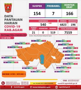 Ditekankan, penambahan kasus baru Covid-19 di Kabupaten Agam hampir terus terjadi setiap hari. Untuk itu, pihaknya mengingatkan masyarakat tidak lengah dan selalu waspada dengan segala kemungkinan.