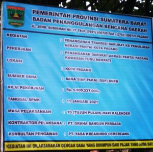 Padang, infoindependen.com. Atasi Abrasi Pantai Padang, Badan Nasional Penanggulangan Bencana (BNPB) kucurkan dana Rp. 19 miliar pada tahun anggaran ini (2021). Dana bersumber dari Dana Siap Pakai (DSP) yang diserahkan kepada Pemerintah Provinsi Sumatera Barat (BPBD Sumbar), demikian disampaikan Suryadi E ST. MT Kabid RR BPBD Sumbar.