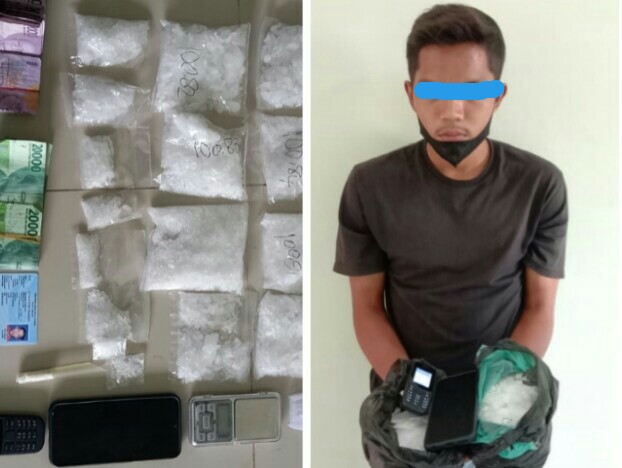 “dari tangan pelaku ditemukan sebanyak 6 bungkus plastik putih berisikan sabu”, jelas Hadi.