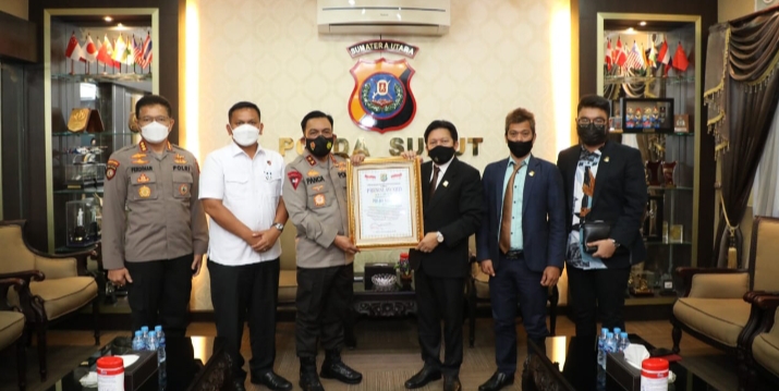 Pemberian penghargaan oleh Lemkapi kepada Kapolda Sumut atas terobosan Drive Thru pelayanan Pembayaran Pajak Kendaraan Bermotor (PPKB) di Jalan Imam Bonjol Medan