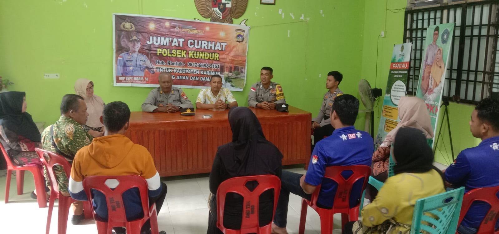 Karimun, Infoindependen.com – Kapolsek Kundur AKP. Septimaris, S.E., yang diwakili Kanit Binmas Polsek Kundur AKP. Sadi, laksanakan Jumat Curhat dengan tema “Cegah Bunuh Diri”, bertempat di Kantor Kelurahan Tanjung Batu Kota, pada Jumat (02/2/2024).