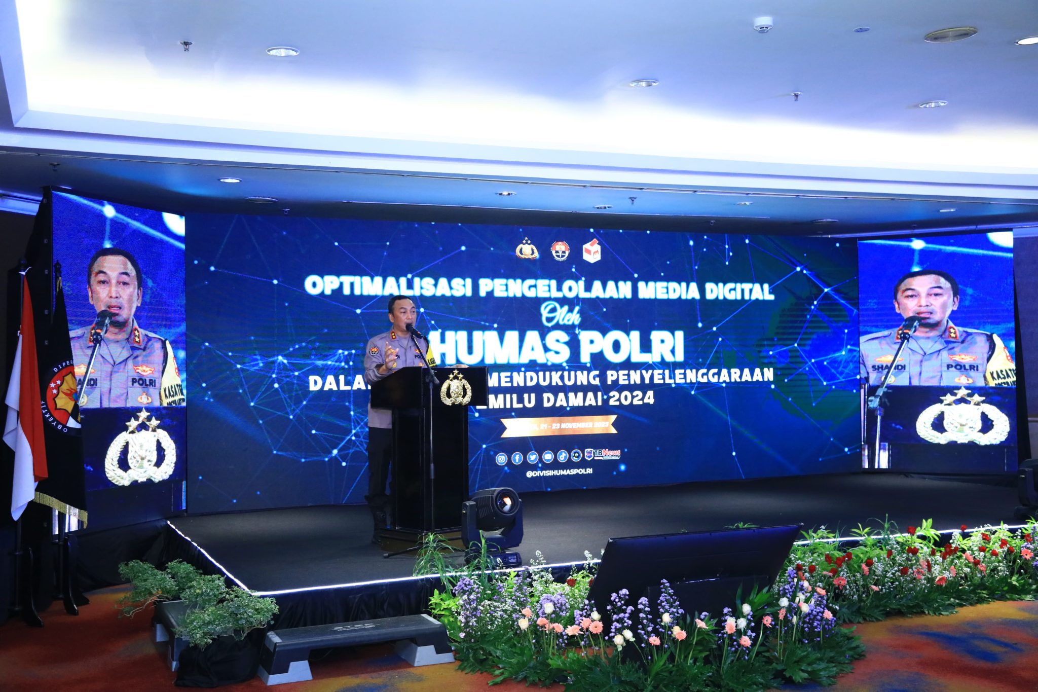 Kadiv Humas Polri Irjen. Pol. Sandi Nugroho dalam sambutannya menerangkan bahwa tantangan pemilu kali ini yang tidak mudah menjadi kesadaran untuk terus memacu meningkatkan kemampuan pengelolaan digital di seluruh jajaran humas. Oleh karenanya, penting bagi semua pihak untuk bersama-sama menciptakan konten-konten positif di ruang digital demi mewujudkan pesat demokrasi yang sesungguhnya.
