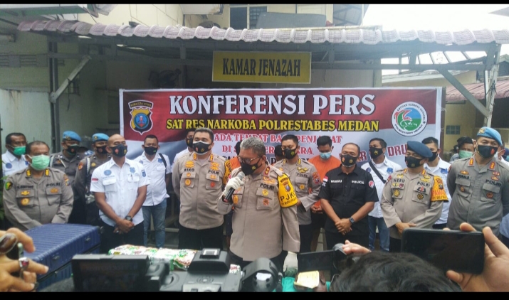 Medan(Sumut),infoindependen.com -Sat Narkoba Polrestabes Medan mengungkap kasus narkotika jenis sabu seberat 26,9 Kg jaringan Medan – Aceh – Pulau Jawa.