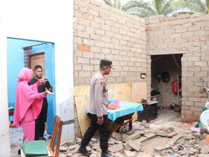 Karimun, Infoindependen.com – Kapolres Karimun bersama rombongan yang didampingi Kapolsek Kuba AKP Hendrial, langsung turun meninjau kondisi rumah warga yang terkena musibah bencana alam puting beliung serta memberikan bantuan kepada 33 (tiga puluh tiga) keluarga yang terkena bencana puting beliung beberapa waktu lalu.