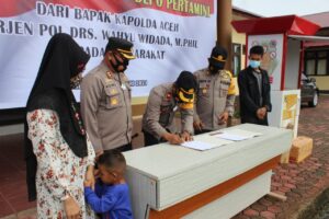 Bantuan dari Kapolda Aceh tersebut yang diserahkan oleh Kapolres Simeulue AKBP, Agung Surya Prabowo, S.I.K., kepada penerima yakni, Ibu Mirza Trisna, warga Desa Luan Balu Kecamatan Teluk Dalam Kabupaten Simeulue, yang berprofesi sebagai Ibu rumah tangga,