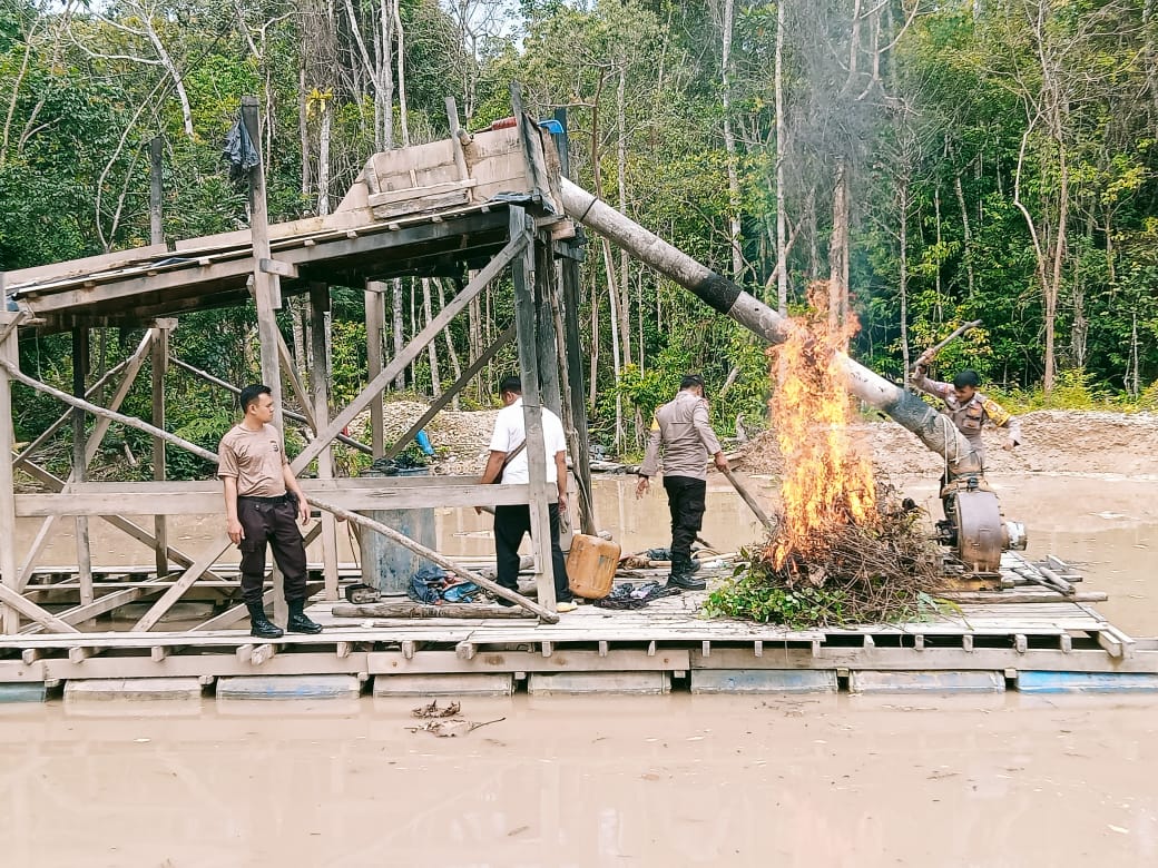 Melakukan penyisiran dan penindakan/pengrusakan terhadap 2 unit rakit Dompeng dengan cara dirusak dan dibakar, agar tidak dapat digunakan lagi,” ungkap Sutarja.