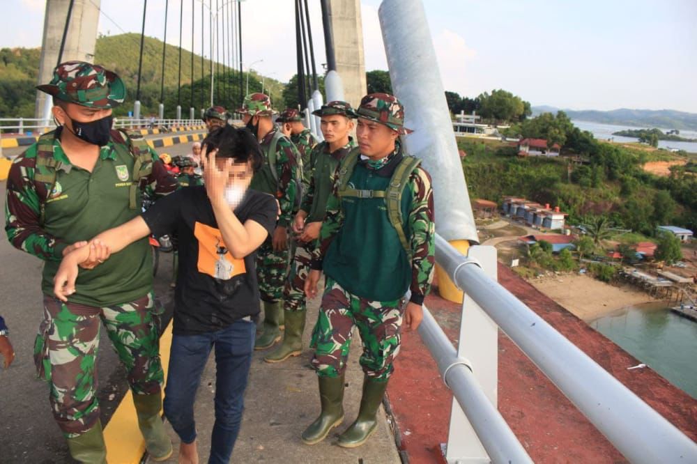 “Pada saat kita melintasi jembatan 1 Barelang, kita dihentikan oleh ibu Ana yang menyatakan, bahwa ada seorang pemuda hendak bunuh diri. Saya langsung lompat dari motor dan berlari ke TKP kemudian menarik pemuda tersebut. Kemudian kita amankan ke warung milik warga,” ujar Kopda KS. Marpaung Personel Satgas TMMD Ke-112 Kodim 0316/Batam.