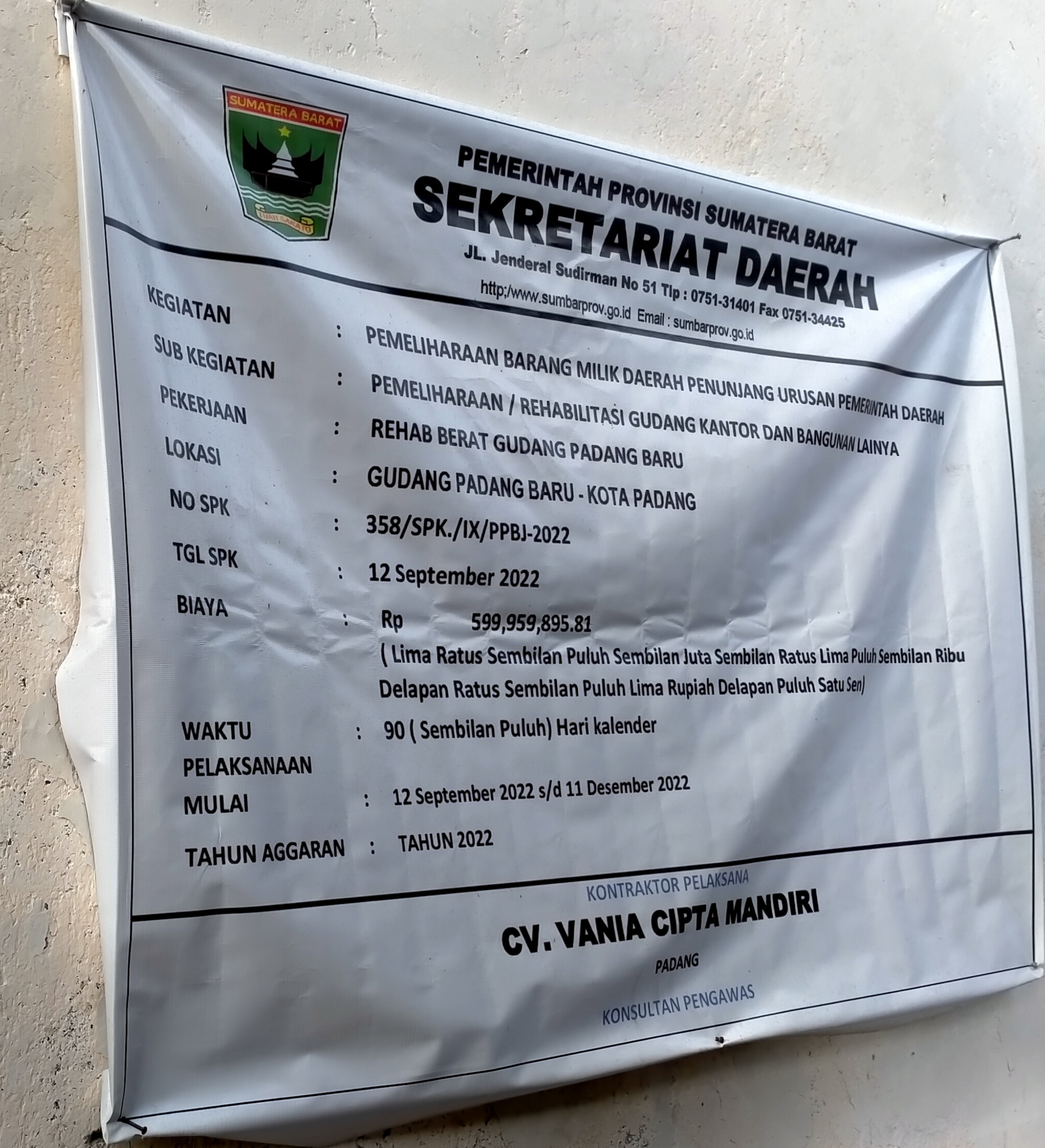 Plank Kegiatan Sekda Propinsi Sumatera Barat yang ditutupi “barang rongsokan”