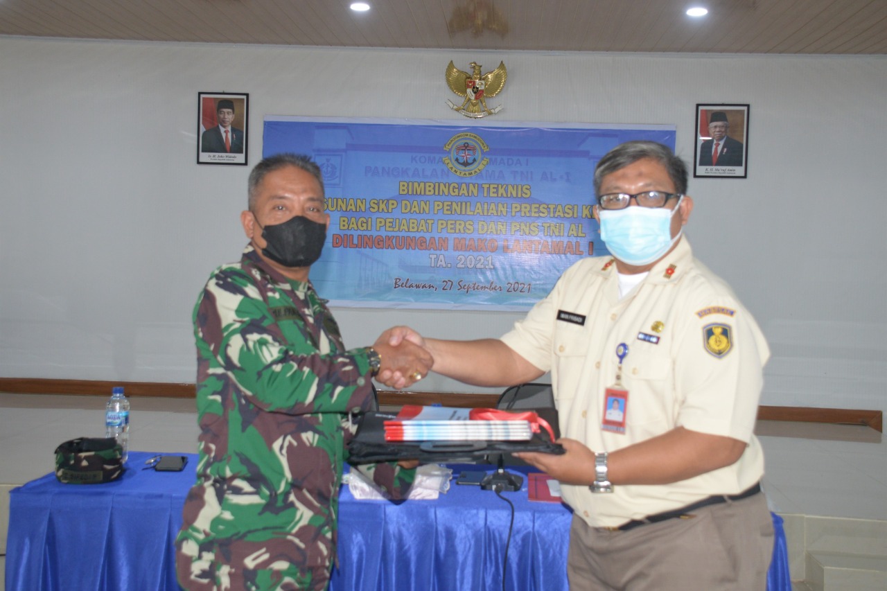 BELAWAN,infoindependen.com – Bimbingan Teknis (Bintek) Penyusunan SKP dan Penilaian Prestasi Kerja PNS Bagi Pejabat Pers dan PNS TNI AL dilingkungan Mako Lantamal I oleh Tim Bimtek P2K Mabesal di aula R.Mulyadi Lantamal I Belawan, Senin (27/09/21).