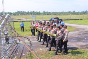 Polres Sintang bersama Bandara Sungai Tebelian Sintang melaksanakan simulasi pengamanan huru-hara jelang Pilkada serentak 2024, Rabu (23/10/2024) pagi.