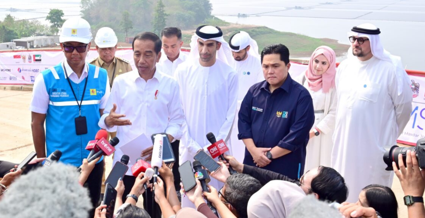 Ket foto: Presiden Joko Widodo menyampaikan keterangannya kepada awak media usai meresmikan Pembangkit Listrik Tenaga Surya (PLTS) Terapung Cirata yang berkapasitas 192 megawatt peak (MWp) di Kabupaten Purwakarta, Provinsi Jawa Barat, pada Kamis, 9 November 2023. Foto: BPMI Setpres/Muchlis Jr.