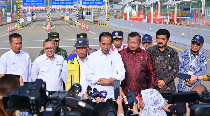 Ket foto: Presiden Joko Widodo memberikan keterangan di hadapan awak media usai meresmikan Jalan Tol Pamulang-Cinere-Raya Bogor di Gerbang Tol Limo Utama, Kota Depok, Provinsi Jawa Barat, pada Senin, 8 Januari 2024. Foto: BPMI Setpres/Muchlis Jr.
