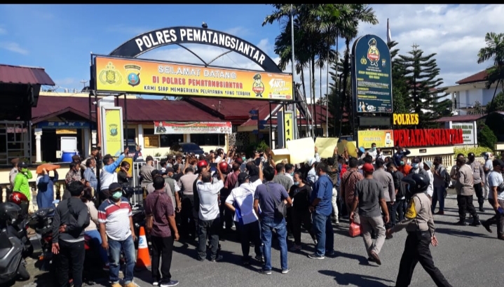 Di depan Mapolres Massa Aksi diterima oleh Kapolres Pematangsiantar, AKBP Boy Suran Binanga Siregar yang didampingi para PJU Polres Pematangsiantar.