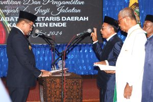 Penjabat Bupati Ende, Dr. Agustinus G. Ngasu melantik dan mengambil sumpah jabatan Penjabat Sekretaris Daerah (Sekda) Kabupaten Ende, Efraim Diakon Aina, S.E., yang sebelumnya menjabat sebagai Pelaksana harian Sekda Kabupaten Ende.