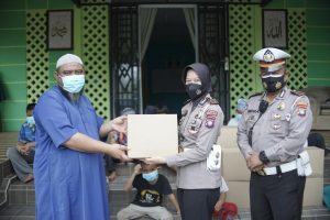 Selain memberikan Paket Sembako Personil Satlantas juga mengedukasi soal keselamatan berlalu Lintas serta protokol kesehatan Covid-19 selama berkendaran,”ujar Kasat Lantas.