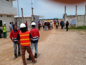 Tapi masalahnya, lokasi yang ditinjau dijaga ketat oleh Security perusahaan PT Tarakan Chip Mill yang menguasai lokasi. Mereka hanya mengijinkan satu orang kuasa hukum penggugat dengan dua orang penunjuk titik batas.
