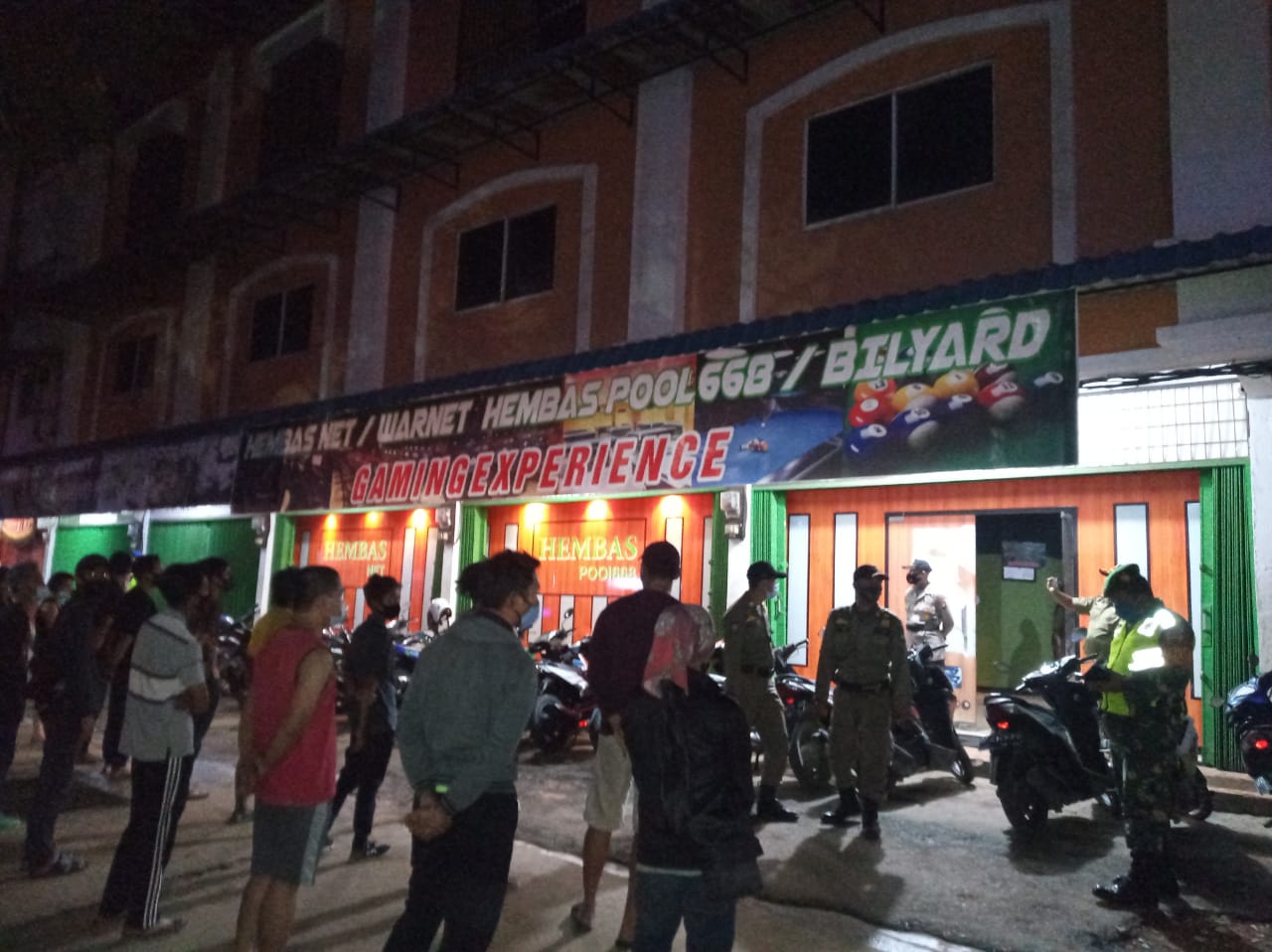 Team gabungan memberi himbauan terhadap pengusaha dan para pengunjung Warnet Hembas untuk semua keluar dari lokasi ruangan,terutama bagi yang tidak menggunakan masker,guna menjaga penularan wabah virus Covid – 19 di lokasi Warnet tersebut.