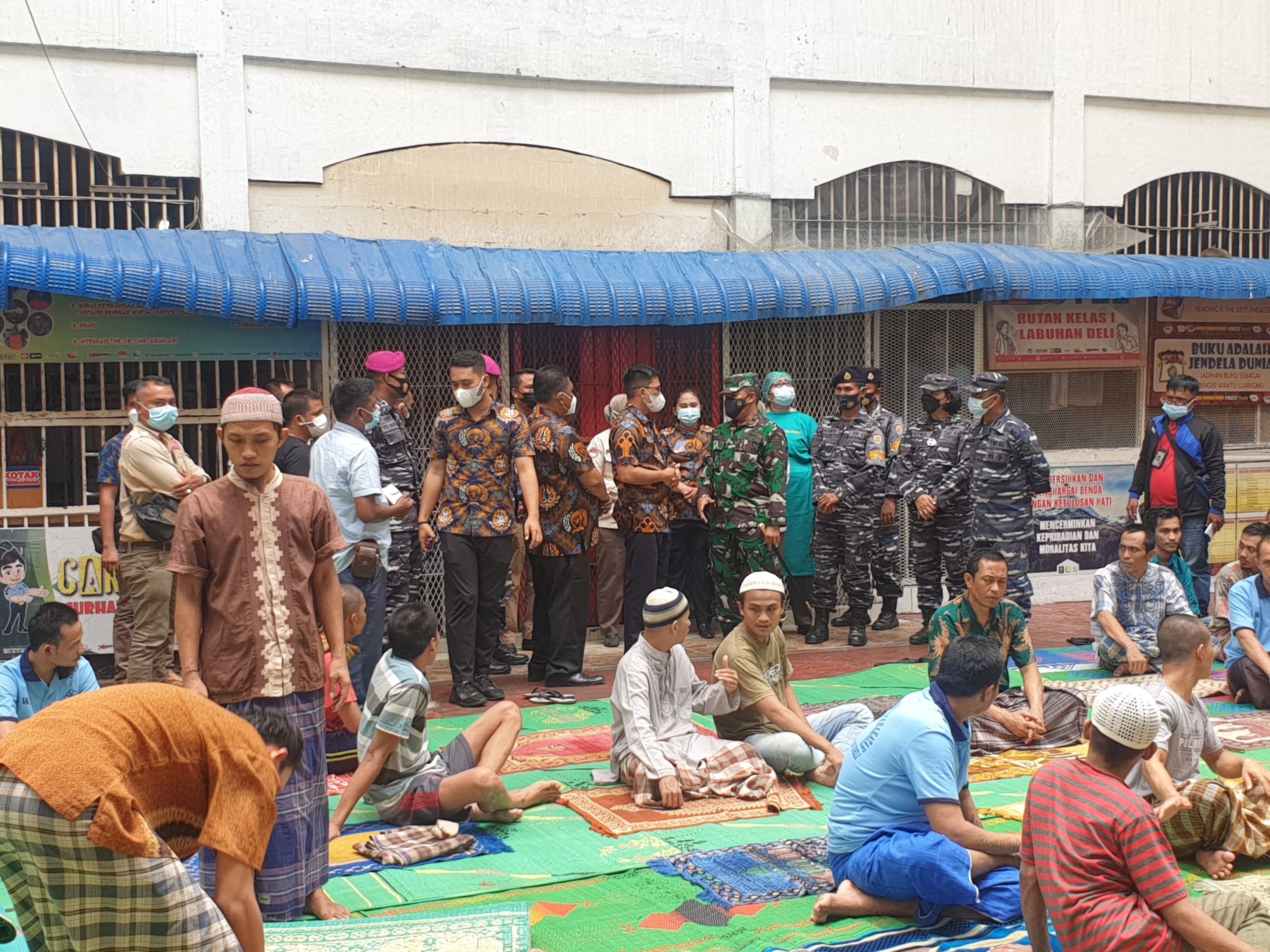 Komandan Pangkalan Utama TNI AL I (Danlantamal I) Belawan Laksamana Pertama TNI Achmad Wibisono yang didampingi Kepala Lembaga Pemasyarakatan (Lapas) Labuhan Deli Belawan Bapak Nimrot Sihotang Amd.IP.SH.,MH meninjau langsung kegiatan vaksinasi di dalam Gedung kunjungan Lapas Kelas I Labuhan Deli Belawan tersebut. Komandan Lantamal I yang menyempatkan diri menyapa dan memberi semangat kepada para Warga Binaan, Danlantamal I juga menyampaikan bahwa Pelaksanaan vaksinasi Covid-19 yang dilaksanakan bertempat di Lapas Kelas I Labuhan Deli adalah bentuk peemintaan dari lapas untuk Kerjasama dan peduli terhadap kebutuhan vaksin terhadap warga binaan yang berada di dalam Lembaga Pemasyarakatan Kelas I Labuhan Deli dengan TNI AL Lantamal I dan menghimbau bagi masyarakat yang sudah divaksin baik itu dosis pertama maupun dosis yang kedua tetap menjaga protokol kesehatan, tetap menggunakan masker, jaga jarak tidak berkerumun dan selalu mencuci tangan,” pungkas Danlantamal I.