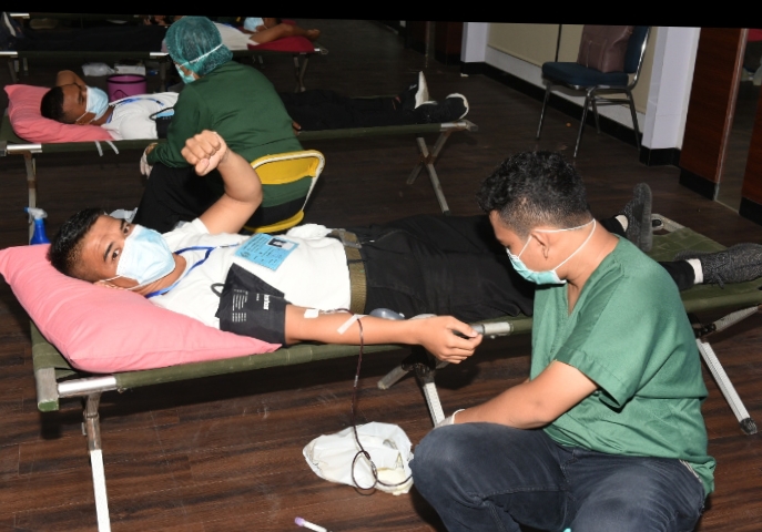 Pelaksanaan kegiatan donor darah dilakukan menerapkan protokol kesehatan dengan ketat dengan tetap menggunakan masker, jaga jarak dan tidak berkerumun dan sebelum donor dilaksanakan pemeriksaan darah serta tensi pada pendonor. (Dispen Lantamal I) / (syamsul)